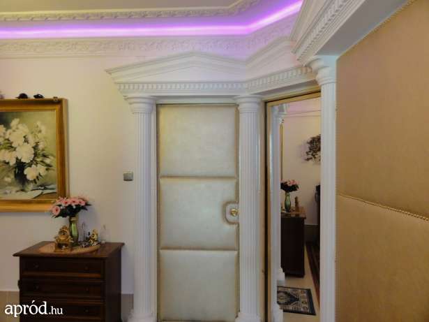 “Az utcafronti részen franciaerkély, a lakásbelső barokkos kialakítású: dór oszlopok, timpanonok, gipszstukkó díszítések a mennyezeten. Remek miliő annak, aki ezt a stílust szereti, ill. annak is, aki most kedveli meg. Éppen a kialakítása miatt lenne alkalmas szépségszalonnak, ügyvédi irodának, melyek alapvetően igénylik az eleganciát. De “csak” lakásnak is ajánljuk azoknak, akik a sétálóbelvárosban szép környezetben szeretnének lakni. ”