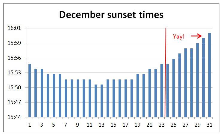 Örömhír annak, aki még nem hallotta volna: karácsonytól kezdve egyre korábban kel a nap, és egyre később nyugszik.