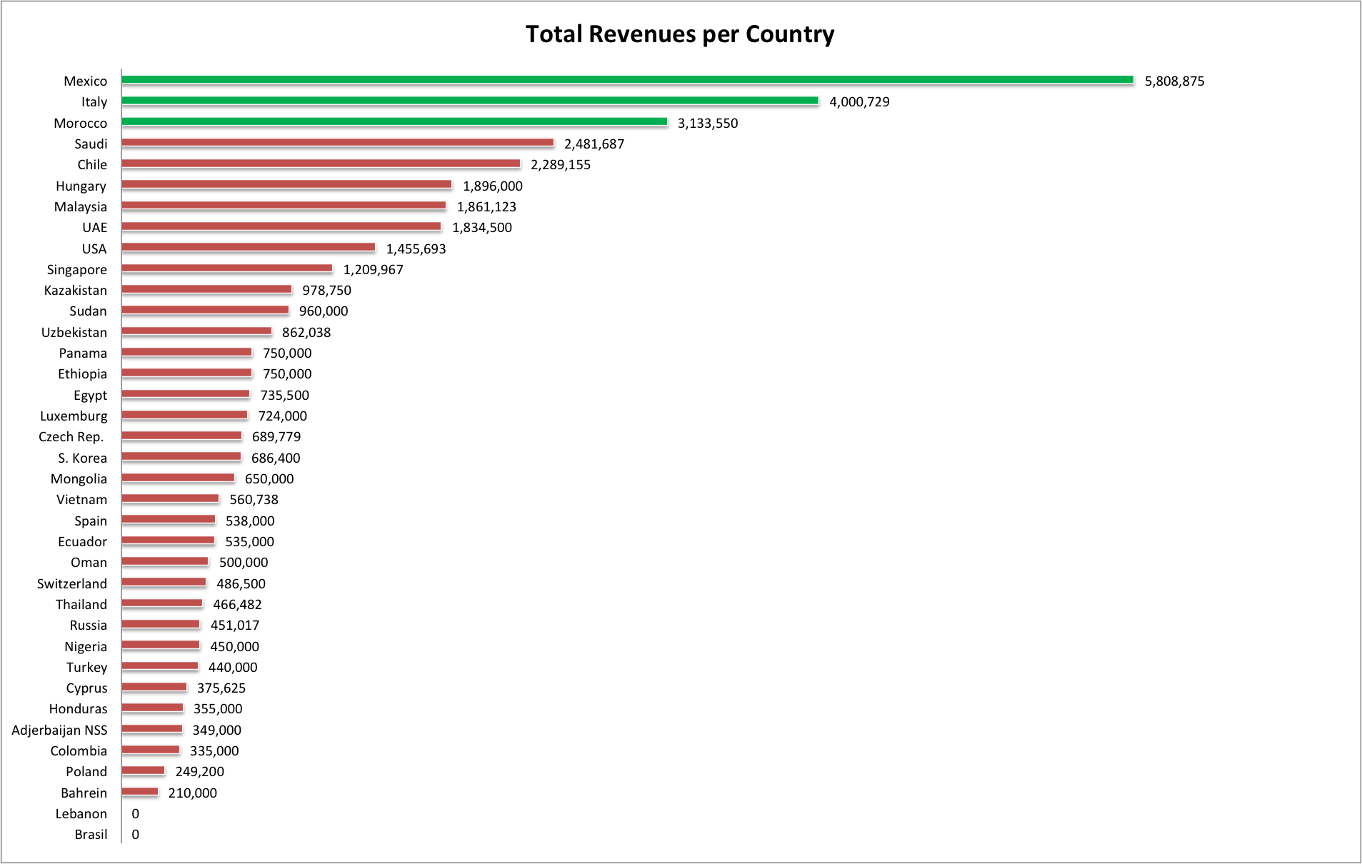 Egyiptom, Etiópia, Marokkó, Szudán, Azerbajdzsán, Kazahsztán, Szaud-Arábia, Üzbegisztán és az Egyesült Arab Emírségek.