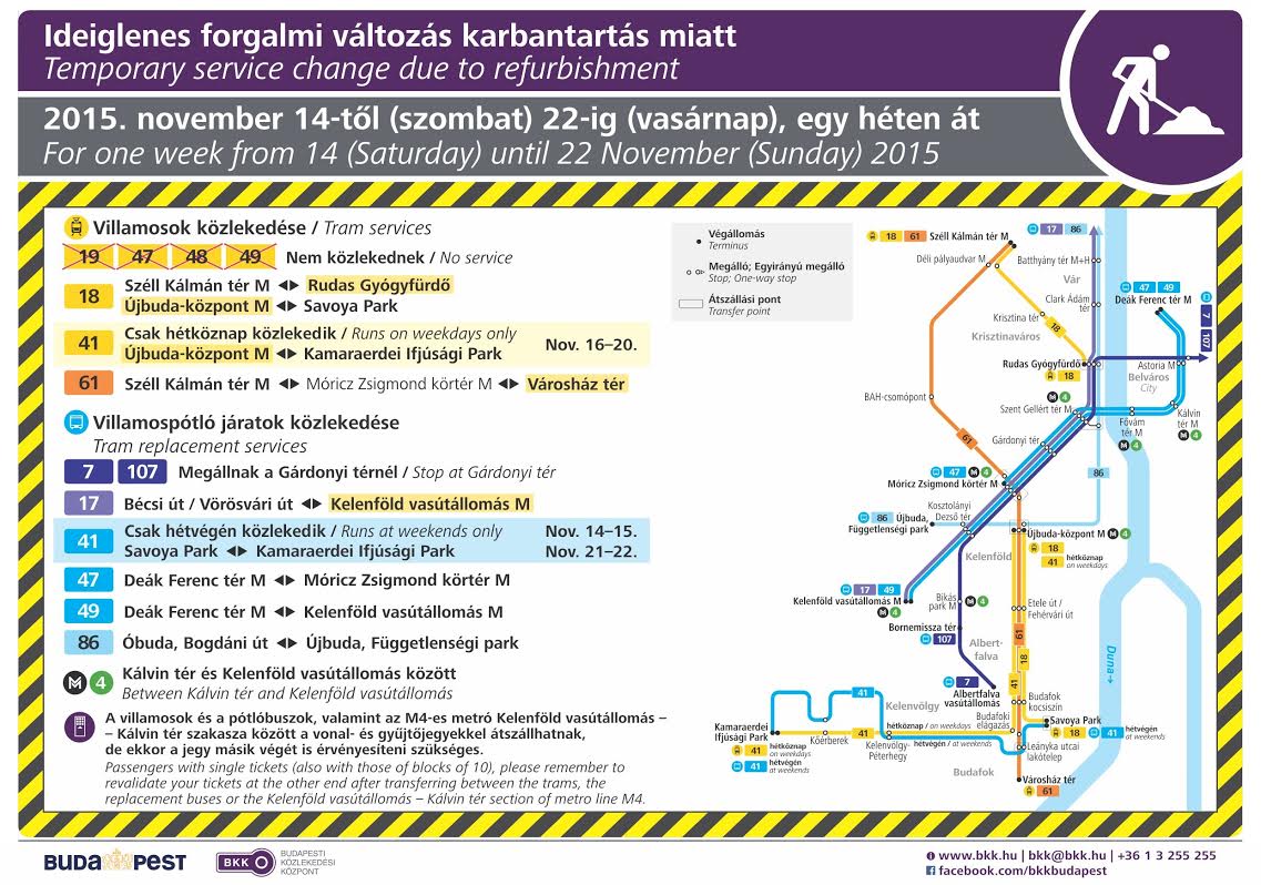A Gellért tér és a Kosztolányi Dezső tér között karbantartják a pályát, azért nem. A többi változás egyetlen sokatmondó ábrán: