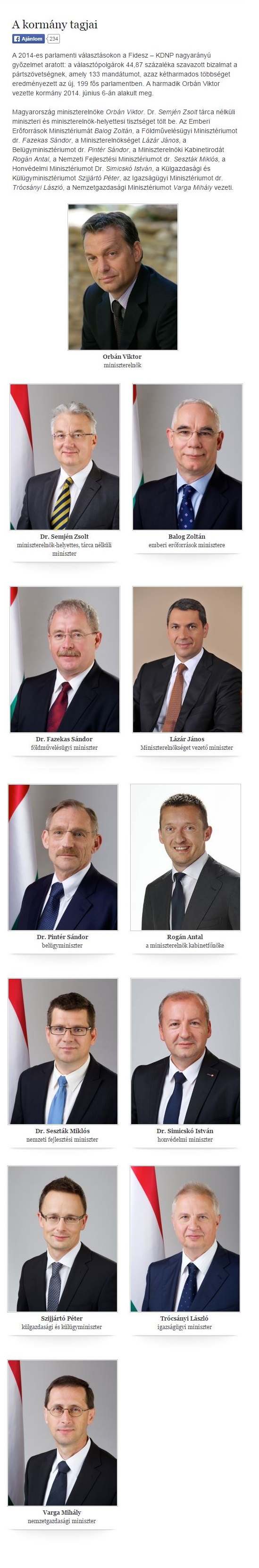 Érthető, egyértelmű struktúra, sok megnyerő férfi, Orbán Viktor alatt közvetlenül Semjén Zsolt helyettes és Lázár János, Miniszterelnökséget vezető miniszter, két támasz.