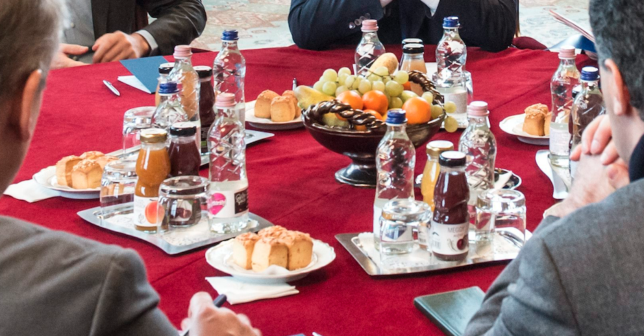 Orbán Viktor miniszterelnök (k) a parlamenti pártok frakcióvezetőivel egyeztet a vasárnapi rendkívüli EU-csúcson képviselendő magyar álláspontról a kormányfő országházi dolgozószobájában 2015. november 28-án. A miniszterelnök mellett Rogán Antal, Miniszterelnöki Kabinetirodát vezető miniszter (b3), Czukor József miniszterelnöki főtanácsadó, Kósa Lajos, a Fidesz frakcióvezetője (b2), Takács Szabolcs európai uniós ügyekért felelős államtitkár (háttal, b), Schiffer András, az LMP (háttal, b2), Vona Gábor, a Jobbik (j) és Harrach Péter, a KDNP (j2) frakcióvezetője, valamint Gottfried Péter, miniszterelnöki főtanácsadó (j3). MTI Fotó: Miniszterelnöki Sajtóiroda / Árvai Károly