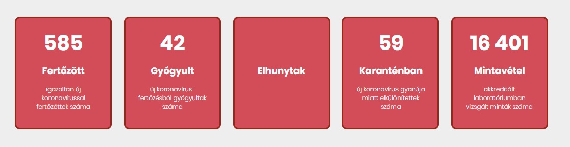 525-ről 585-re nőtt a koronavírussal fertőzöttek száma Magyarországon a koronavirus.gov.hu táblázata szerint. Ez a második legnagyobb növekedés 24 óra alatt, mióta megjelent az első fertőzött. Az elhunytak száma továbbra is 20.