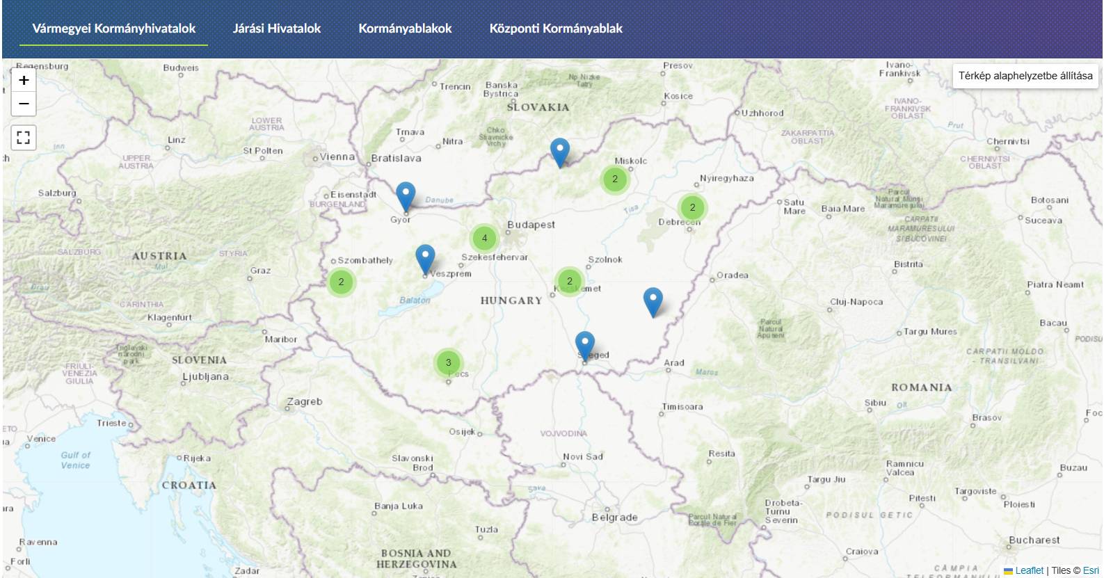 Az oldalnak fontos eleme egy interaktív térkép, amelyen információkhoz lehet jutni a megyei és a járási kormányhivatalokról és a kormányablakokról. Ehhez egy olyan térképalkalmazás épül be az oldalba, amely egy Leaflet nevű nyílt forráskódú szoftvert használ, ami Ukrajnában jött létre, a kormányhivatali oldalon is ott szerepel a térkép jobb alsó sarkában az ukrán zászló.