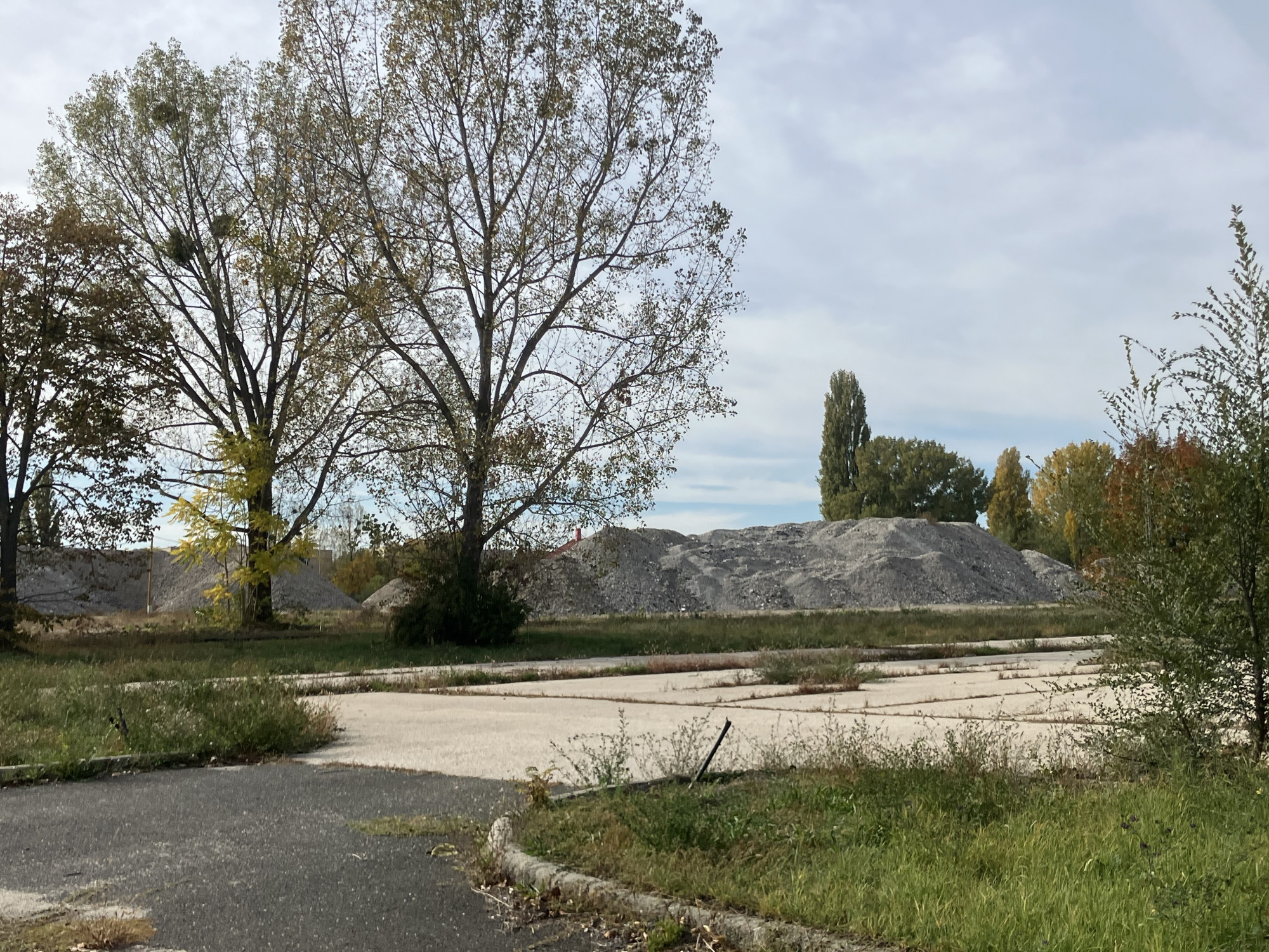 Az egykori Tungsram gyárépületeit január és április között már le is bontották, a törmelékeket ledarálták, ennyi látszik most a kerítésen benézve.