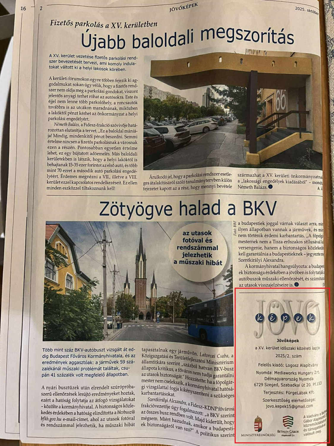 Ahogy arra a DK-s Barkóczi Balázs felhívta a figyelmet, a nemcsak az aluljáróban, a fidelitasosok standján osztogatott, hanem a XV. kerületi és újpesti postaládákba is bedobott újságot egy helyi fideszes álcivil szervezet, a Logosz Alapítvány adta ki, amit egy XV. kerületi KDNP-s önkormányzati képviselő gründolt.