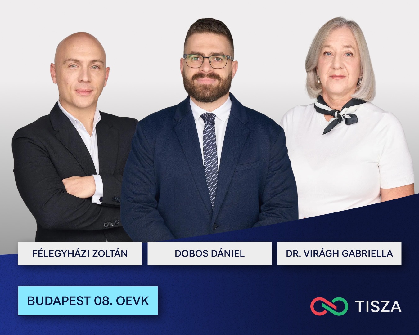 A 08-as fővárosi választókerületben Dobos Dániel volt hivatásos honvéd-mérnök, jelenleg minőségügyi vezető, Félegyházi Zoltán vállalkozó-menedzser, valamint Virágh Gabriella háziorvos, a Semmelweis Egyetem családorvos oktatója vesz részt a Tisza előválasztásán.
