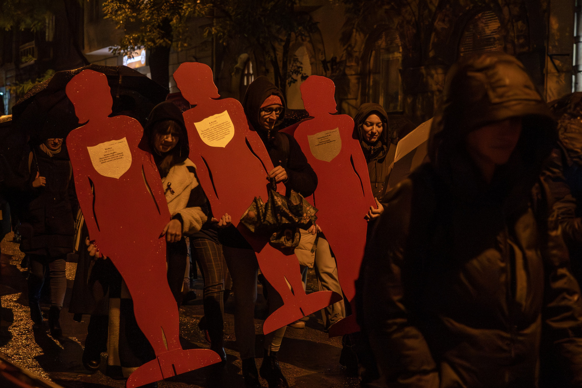 • Eközben az esemény előtti napokban véres lepedőkkel és néma kiállással demonstrált több száz hallgató a Képzőművészeti Egyetem előtt is, mivel az egyetem egy jelenlegi hallgatója azt állítja, hogy több mint három éve egy diáktársa megerőszakolta.