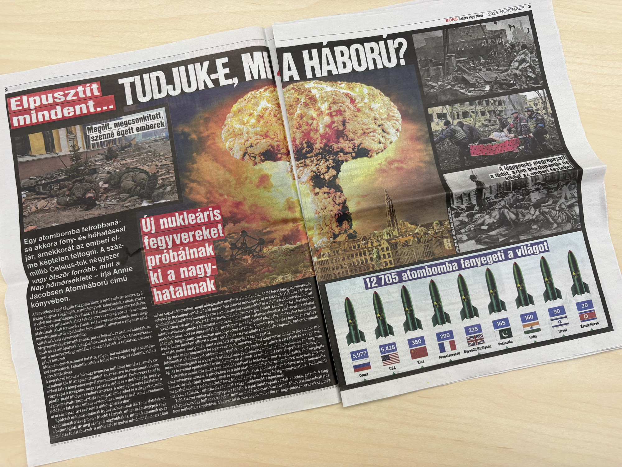 A szóban forgó cikk része a Bors által írt „Háború vagy béke?” című különkiadásos, ingyenes lapszámának, amiről itt írtunk hosszabban. Ebben a Bors 16 oldalnyi, tömény rettegtetéssel ajándékozza meg az olvasót, az ilyen típusú főcímei segítségével: