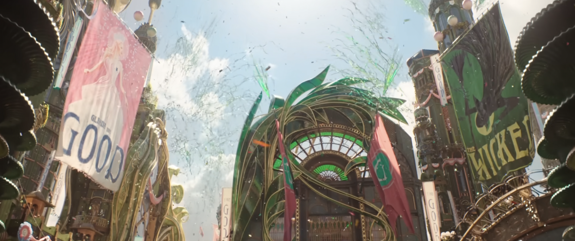 A folytatásban már a gonosznak kikiáltott zöld bőrű boszorkány arcával teli plakátokat láthatjuk mindenhol, kivéve ha épp nem a mosolygós Glindát nézhetjük, akit egyszerűen csak „A Jó”-nak neveznek. Egy ponton Glinda meg is kérdezi: