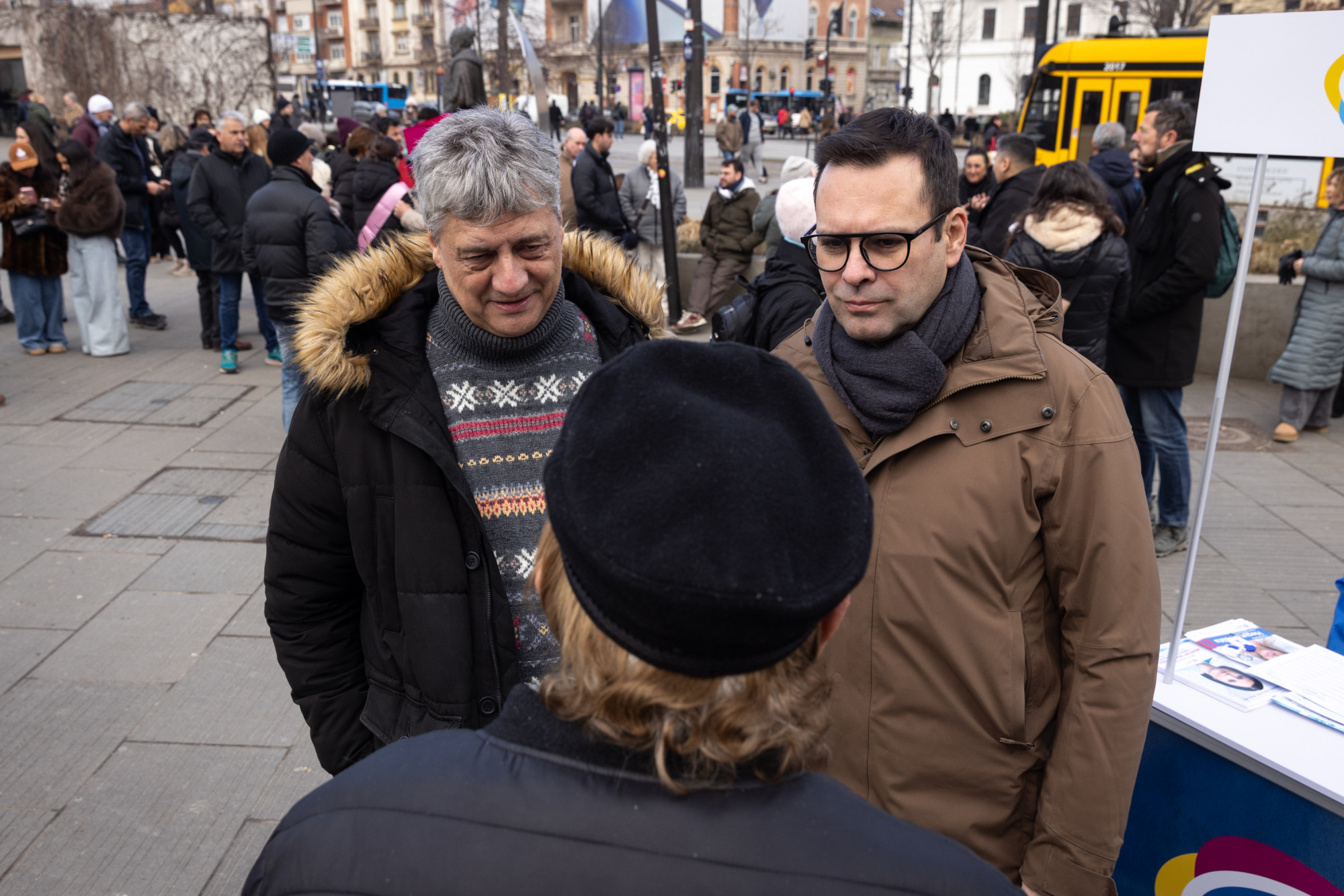 Gréczy Zsolt és Molnár Csaba aláírásgyűjtés közben.