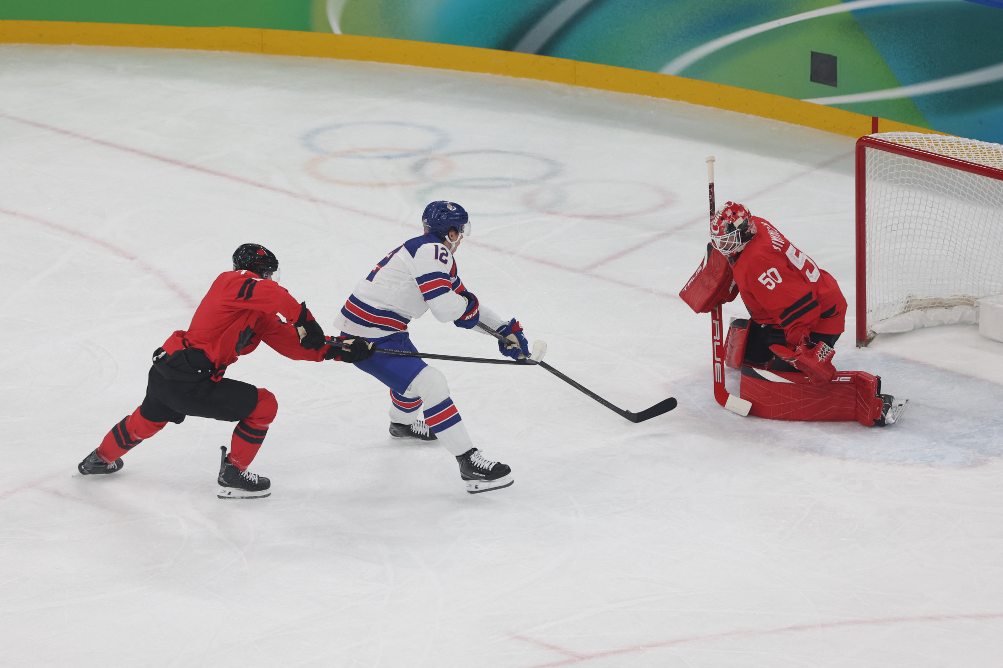 Bennett a hajrában 2+2 perc kiállítást kapott, de ez kimaradt, sőt, még ez alatt az amerikaiaktól is kiállítottak és a Kanada került fórba, de ez is ugyancsak gól nélkül telt le. Jöhetett a hosszabbítás, ami Binnington bravúrjával indult, de kevéssel később Jack Hughes lövésével szemben már tehetetlen volt.