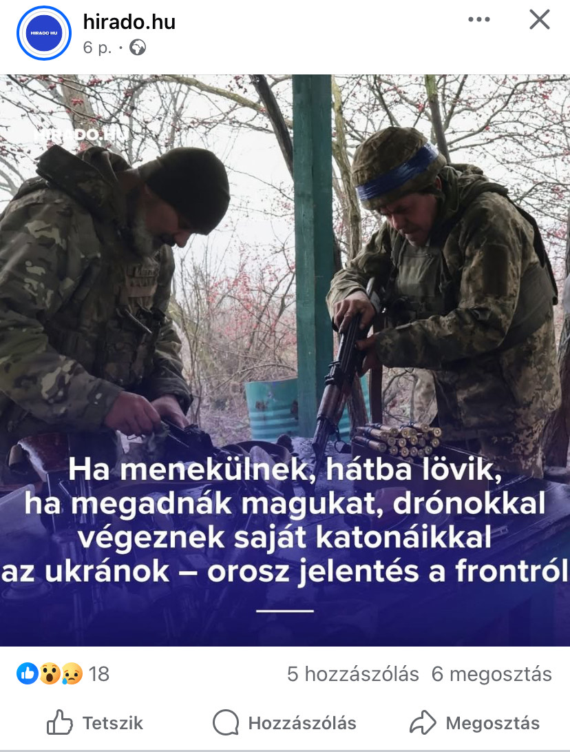 Az agresszor hadseregének ennyire nyílt dicséretére a magyar nyilvánosságban utoljára 2022. február 28-án volt példa, de az akkor nem jutott túl internetes körforgáson. Akkor a putyinista–orbánista posztjairól ismert szélsőséges platform, a Számok–adatok az RT egyik híradása alapján mutatta be, ahogy az oroszok ételt és cigarettát osztanak az ukrán hadifoglyoknak.