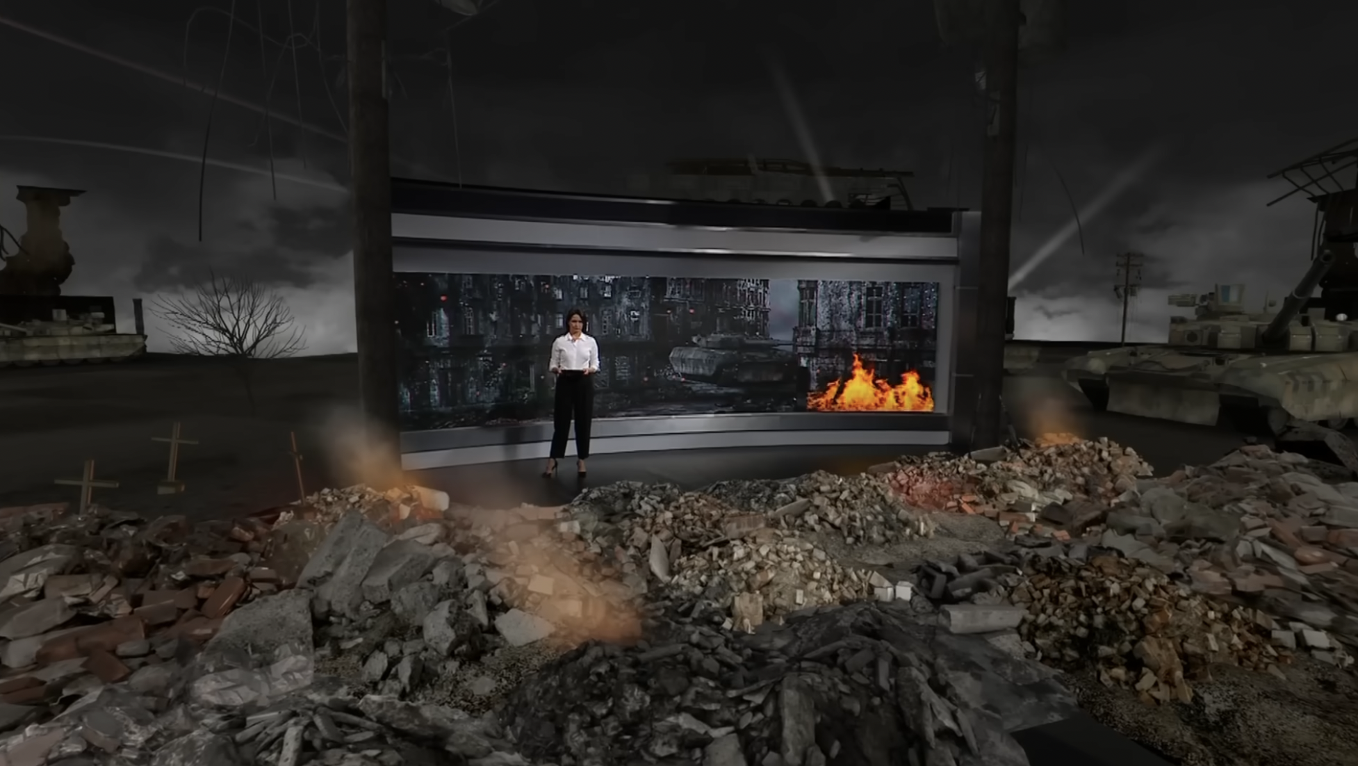 A közel húszperces műsor az ukrán frontról és a „front túloldaláról” hoz híreket és történeteket. Visszatérő témák a veszteséglisták és a katonai mozgósítás, de rendszeresen szóba kerül az európai beavatkozás lehetősége is. A sokkhatás nem csak a bejátszásokon keresztül érvényesül: a még erősebb bevonódás kedvéért a műsorvezető CGI-tankok, AK-replikák és az izjumi tömegsírokra emlékeztető fejfák között lépked.