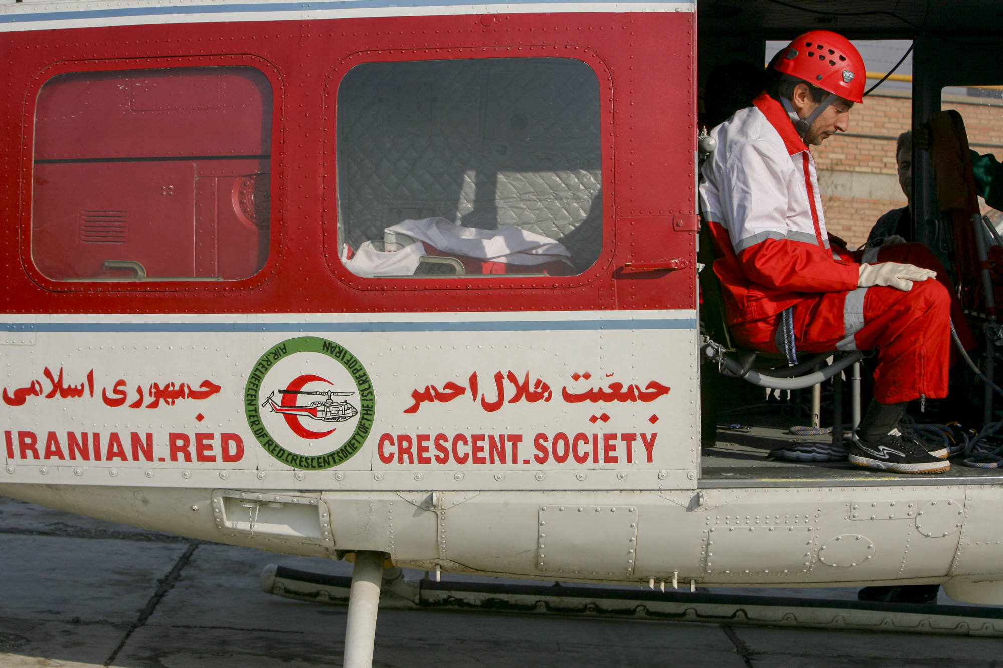 Az iráni Vörös Félhold egyik mentőhelikoptere.