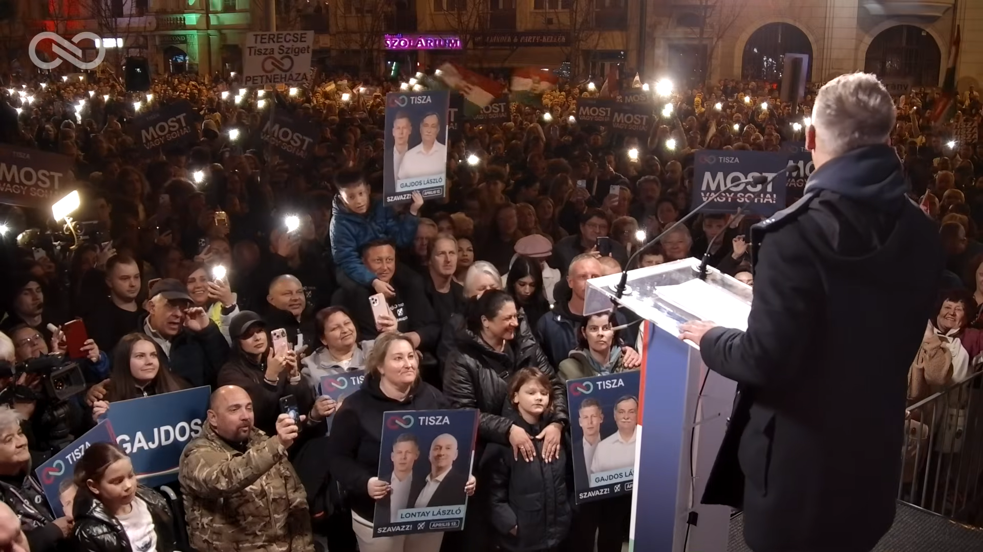 A Tisza Párt elnöke szerint ez a választás tétje, úgyhogy gondolja végig mindenki: a saját és családja életével és biztonságával játszik, ha erre a hatalomra szavaz. Április 12-ét ismét népszavazásnak nevezte, szerinte a Fidesz az összeomlás, a káosz és a teljes bizonytalanság jelképe.