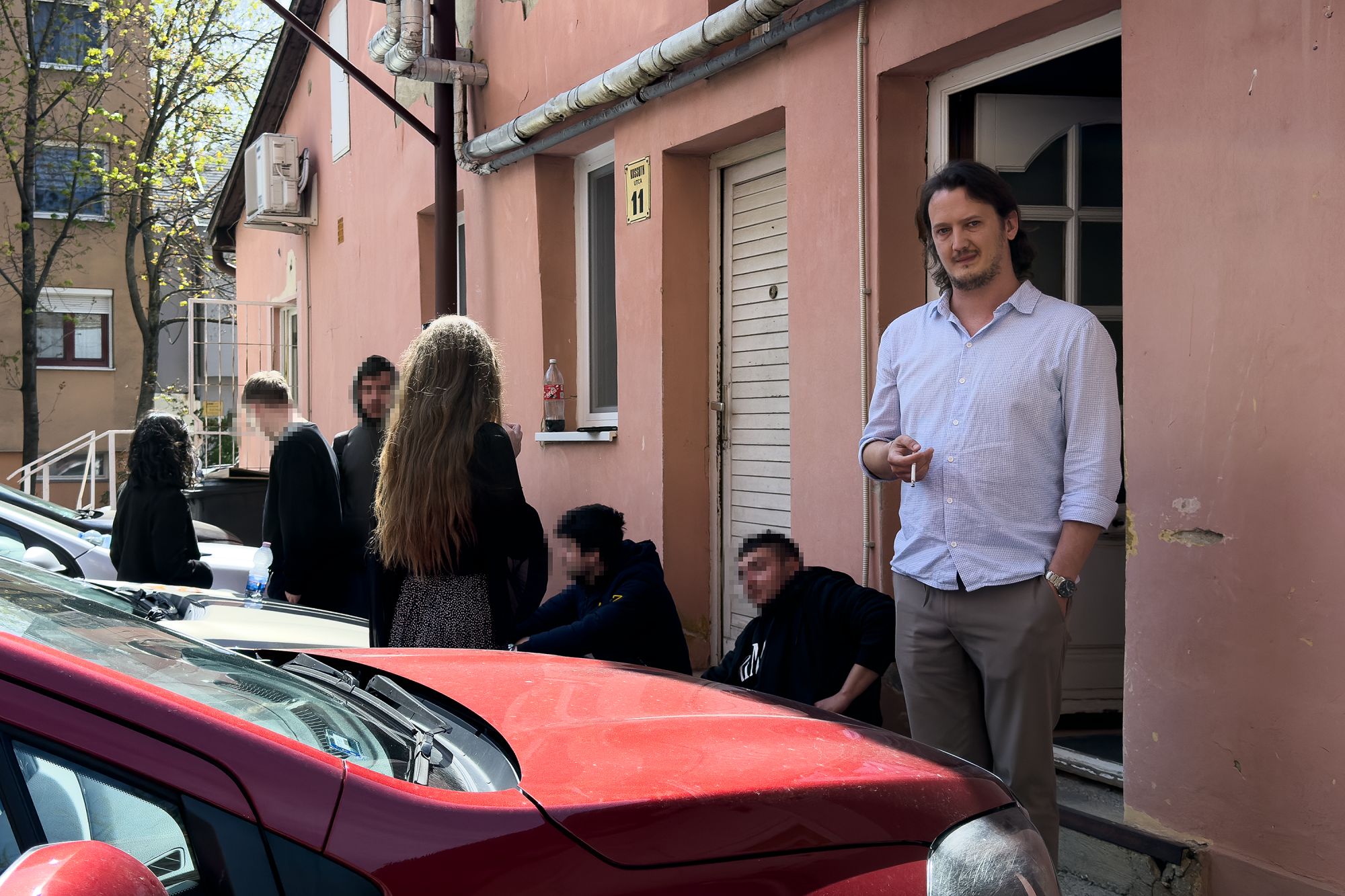 Amikor megkérdeztük tőlük, hogy mire számítanak a vasárnapi választáson, a Fidesz-irodából kilépett egy húszas éveiben járó férfi, és kijelentette, hogy „dolgozunk, és nem nyilatkozunk”. Bár a cigiző fiatalokat kérdeztük, a magát aktivistaként meghatározó férfi magához ragadta a szót, és egyre agresszívabb hangnemben követelte, hogy hagyjuk el a helyszínt. Azt viszont nem akarta megmondani, hogy mégis milyen munkát végeznek a fiatalok péntek délben a Fidesznek. Később kiderült, hogy az illető Pászti Dániel volt, aki a 2024-es önkormányzati választáson fideszes képviselőjelöltként indult Szentesen.