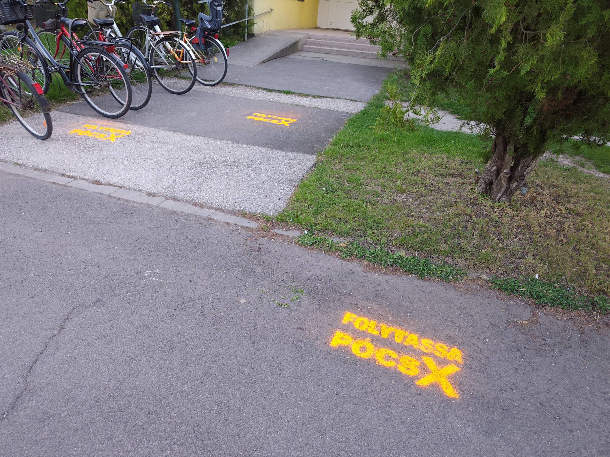 Több olyan fényképet is kaptunk olvasóinktól, melyek szerint a Fidesz jelöltjének nevét a szavazóhelyiségek közvetlen közelében fújták fel a járdára. Arról már beszámoltunk, hogy Jászberényben egészen a szavazóhelységig végigfújták a járdát narancssárga feliratokkal, amellyel arra buzdítják a választókat, hogy szavazzanak Pócs Jánosra, a Fidesz jelöltjére.