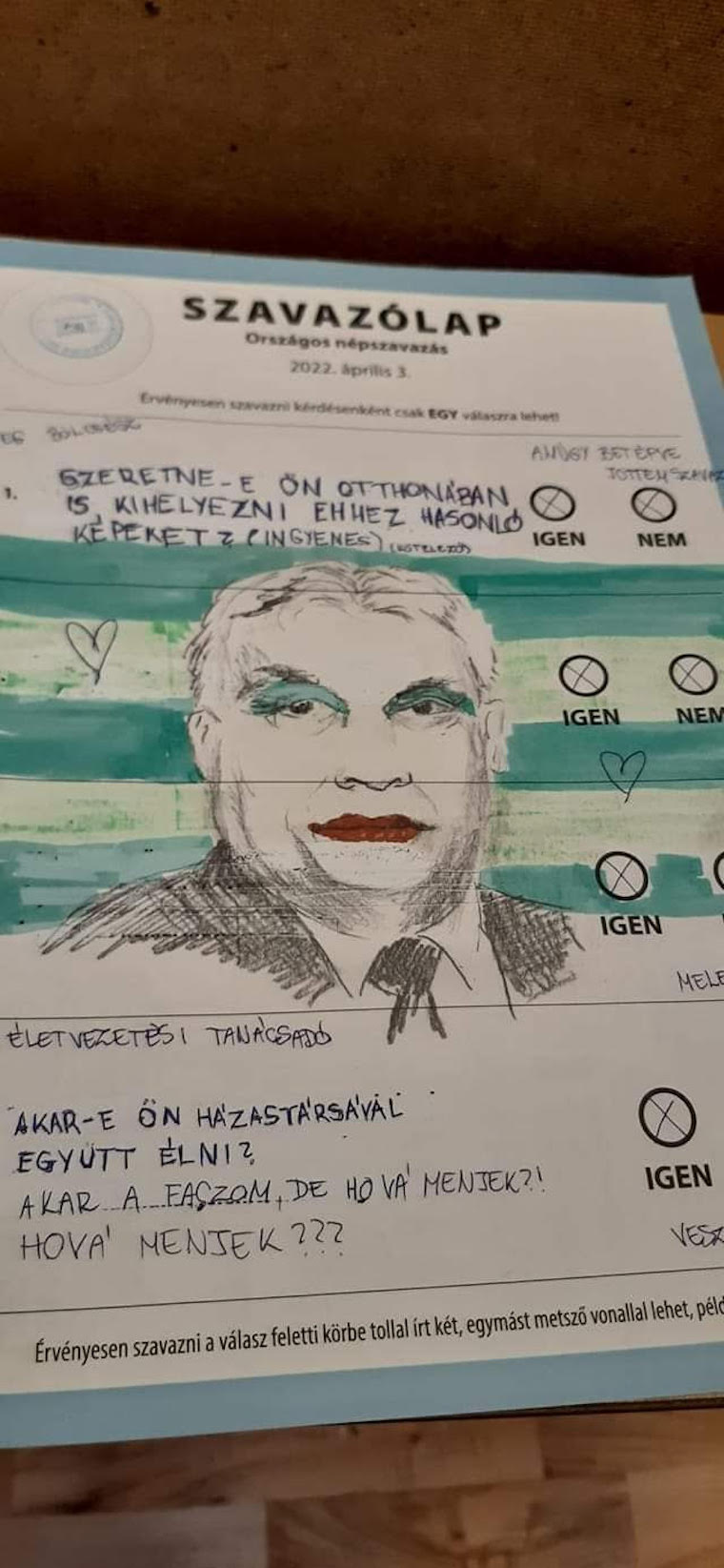 A 2022-es népszavazáson például ilyen remek alkotások is születtek, itt szándékosan elrontott szavazatokkal (ment az iksz mindenhova).
