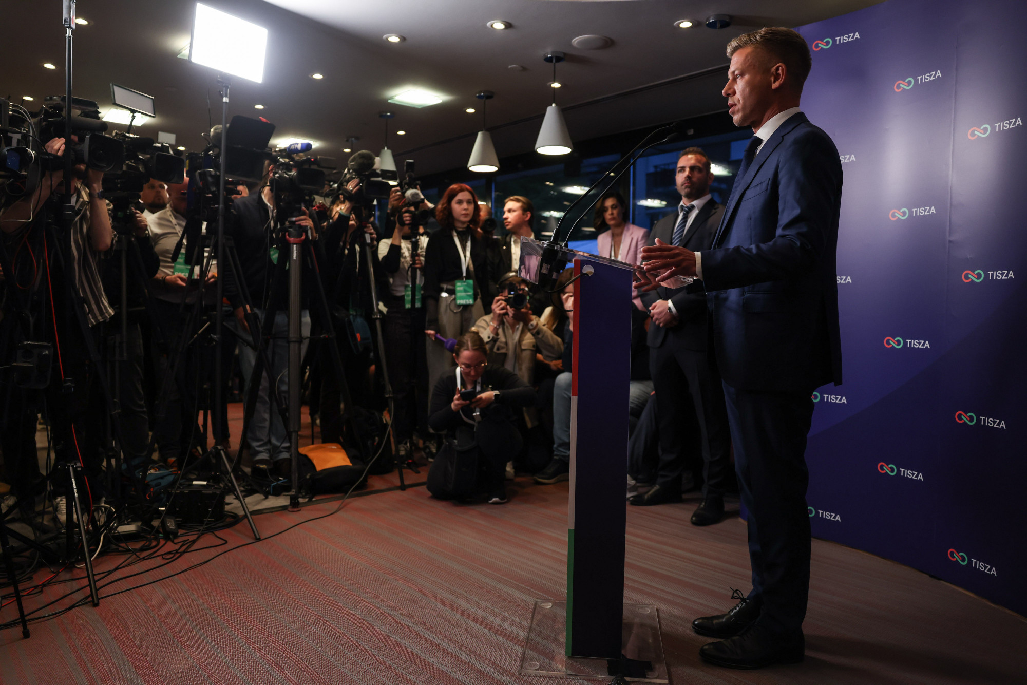 Két órával korábban még csak néhány tiszás kampányember merte meggyőződéssel mondani, hogy a rekord részvétel nekik kedvez. Magyar Péter a 7 órás urnazárás utáni rövid sajtótájékoztatóján óvatos optimizmusról beszélt, és hamar szigorú arccal visszasietett az emeletre.