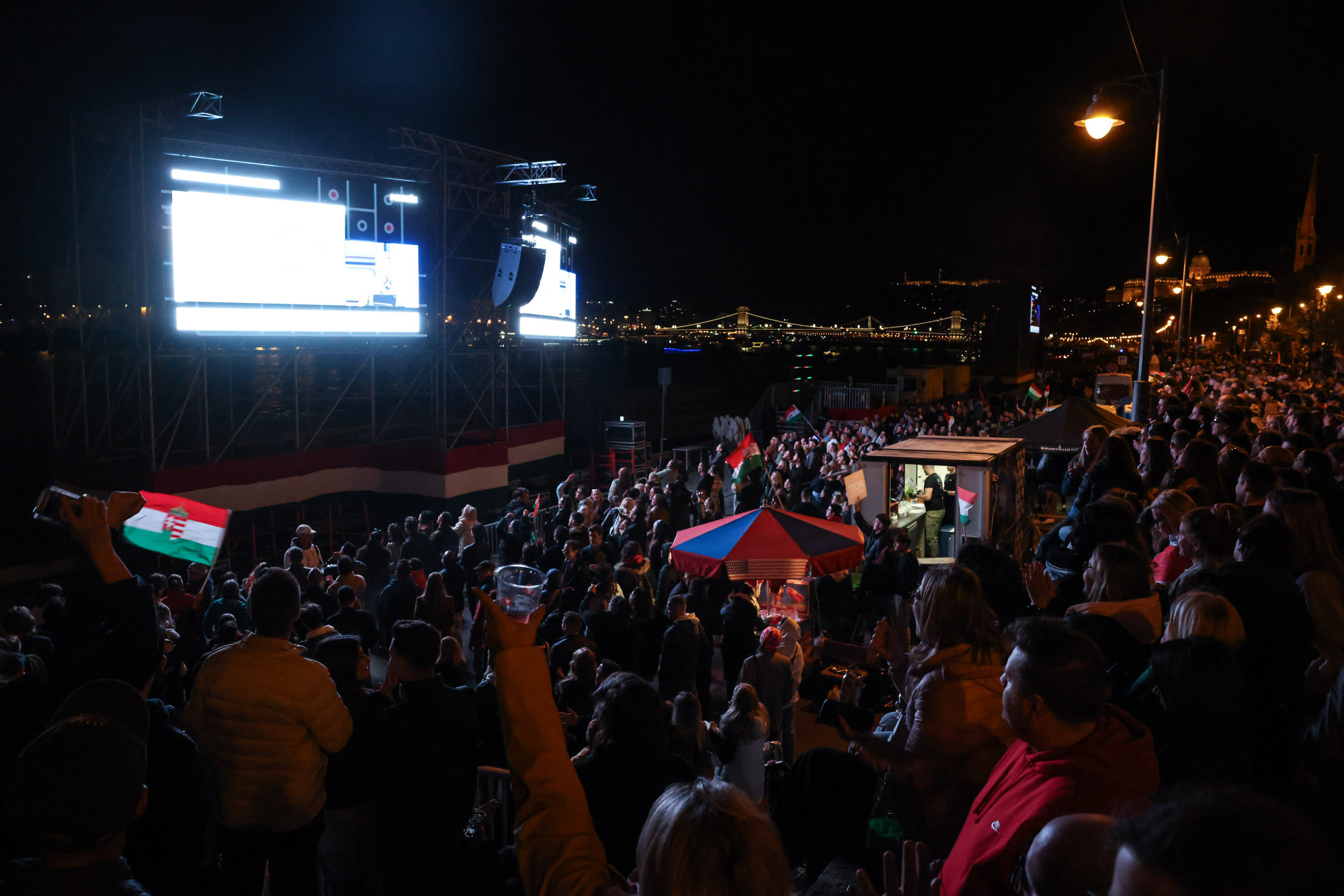 A Novotel földszinti éttermének panoráma ablakai mögött ezrek nézték már ekkor a nagy kivetítőkön a Partizán élő adását. A Batthyány téren nagy fehér sátrat állítottak fel, ott vártak az eredményre a tiszás képviselőjelöltek és az önkéntesek a családtagjaikkal. Két órával később az egyik megválasztott képviselő a karjában pörgeti majd a feleségét a sátor előtt.