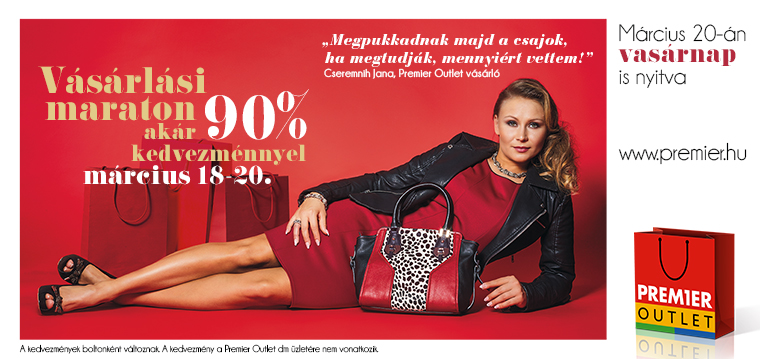 Március 18. és 20. között a Premier Outlet hatalmas Vásárlási Maratont rendez, ahol a legnépszerűbb világmárkák kínálatából, akár 90%-os kedvezményekkel pezsdíthetjük fel tavaszi ruhatárunkat.